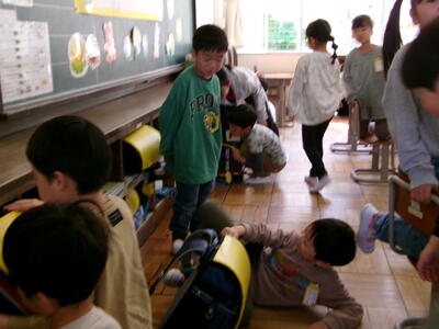 校舎内のあちこちから必要なものを運びます。