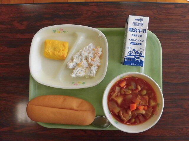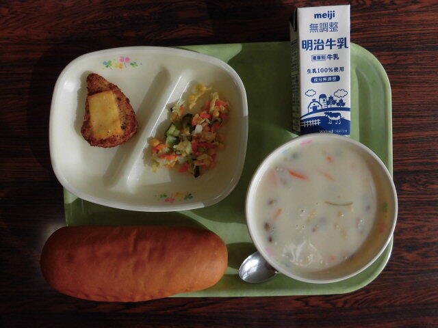 今日は、マカロニのクリーム煮の中にも牛乳が入っています。