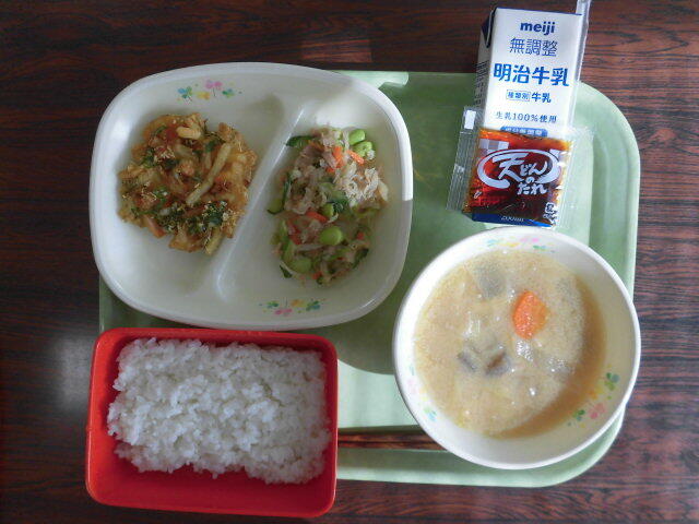 生産にたずさわった多くの方々へ感謝の気持ちを忘れずに、地元でとれた食材をつかった今日の給食も、しっかり食べましょう。