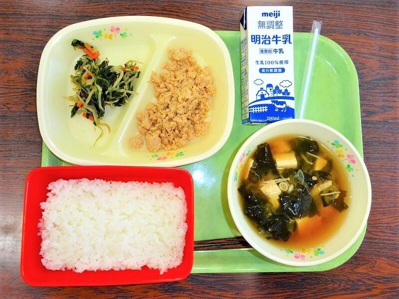 今日は、さくら市産のみそを使って、豆腐とわかめのみそ汁にしました。
