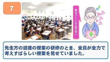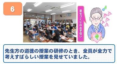 7月6日(土)、土曜授業を行いました。どの学年、クラスもピーンと背筋が伸び、まさに素晴らしい「立腰」の姿が見られました。また、自分の考えを堂々と発表したり、ペアやグループで話し合ったりしている姿がたくさん見られました。