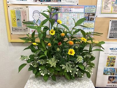 花器を生かすとこんなに素敵な表現がされるということを教えていただきました。今飾ってくだっている花器は、横幅がありかなり細長いものです。