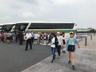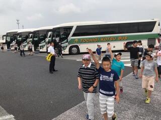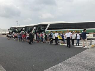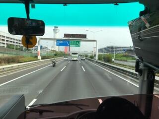 羽田空港を通過しました。バスの中では、元気なアンパンマンマーチ、しりとり大会が進められています。
