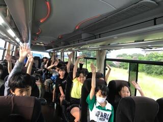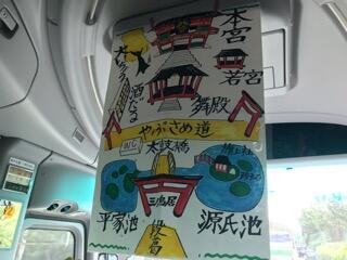 バスの中では、レクレーション係が楽しい問題を次々に出題しています。