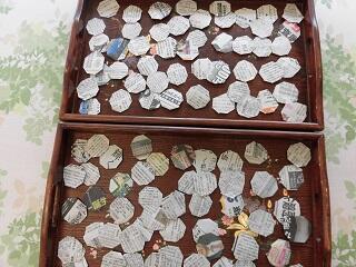 図書室では、図書サポート隊の方々が、1・2年生を対象に花みくじを開催してくださいました。