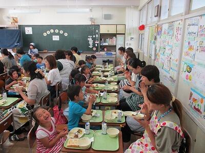親子給食は、親子で給食をともにし、ふれあいの場をもつとともに、望ましい食習慣について理解を深めることを目的に実施しています。