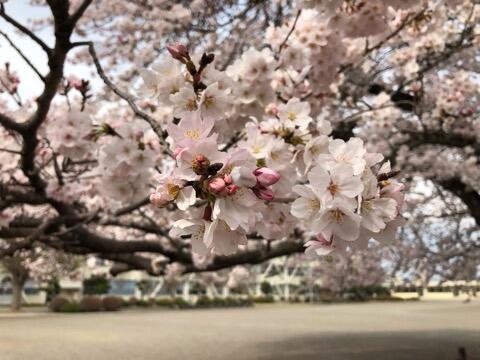 ここのところ寒い日が続いていますが、少しずつ開き始め美しい姿を見せてくれています。始業式、入学式頃、満開になるといいなあと願っているところです。下から2枚目の写真の青空の色が、とても素敵だなあと心を奪われました。やはり桜と青空は日本の象徴ですね。「令和」の意味を深く実感しています。