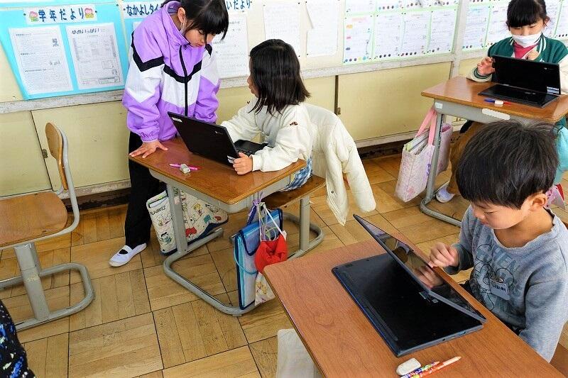 国語の「すてきなところをつたえよう」の授業です。友達のがんばっているところ、いいところを手紙に書く学習です。今日は、手紙を書く前に、友達にどんないいところがあるかをロイロノートを使ってメモしていました。