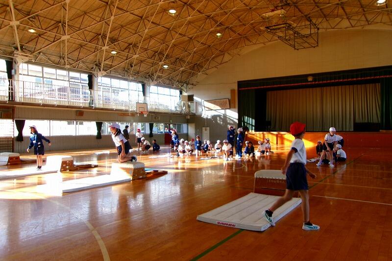 子どもたちは、お互いの跳び方を見合いながら練習に取り組んでいました。