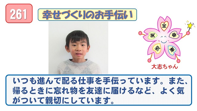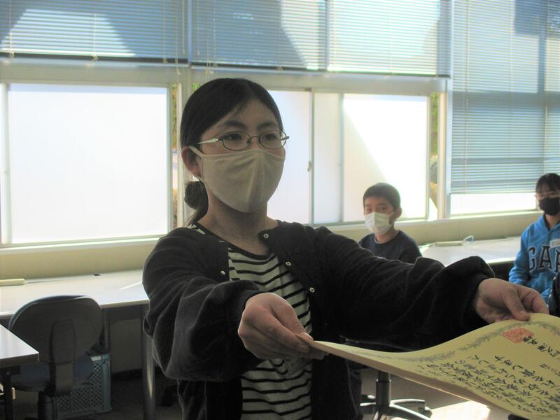 昼休みに、オンラインで表彰集会を行いました。会場では、代表児童が表彰を受けましたが、各教室でも担任から賞状を渡しました。それぞれの分野での活躍、すばらしいですね。おめでとうございました。