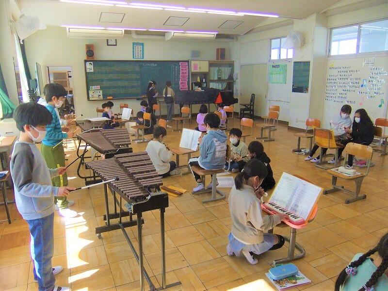 子どもたちは、友達の演奏にも耳を傾けながら、楽しく練習していました。