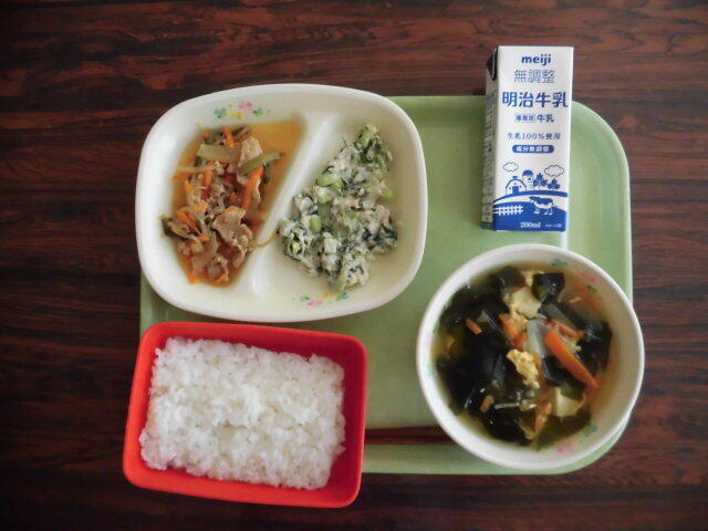 今日の給食で、完食できそうな人は完食を目指して、苦手なものがあって残してしまいそうな人は、いつもより一口、二口がんばって食べてみましょう。