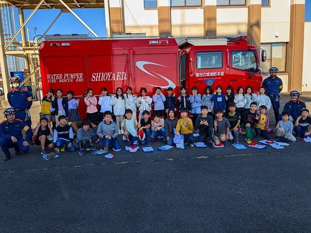 昨日の3年1組、3年3組に続き、今日は、3年2組が消防署に社会科見学に行きました。