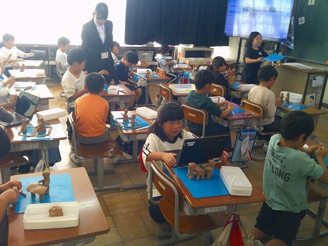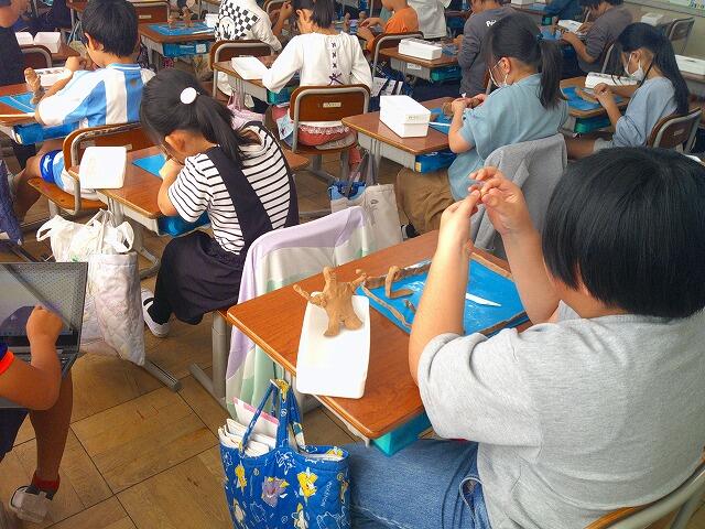 図工の授業です。粘土を使って、今までの思い出の場面を作っています。