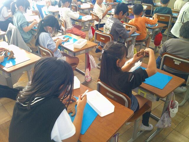 子どもたちは、今までの学校生活を振り返りながら、集中して作品を作っていました。