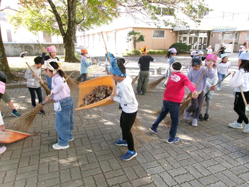 福祉委員会の呼びかけによりハッピースマイル活動が実施されました。本日は、昼休みに校舎前の落ち葉掃きを行いました。SUNさんサポート隊Jrの児童がたくさん集まり、熱心に活動してくれたおかげで、校舎前がすっかりきれいになりました。