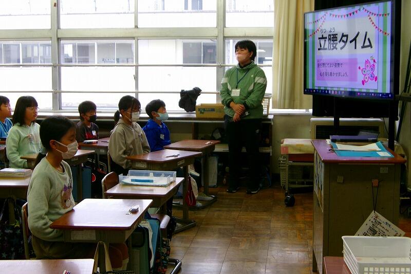 「立腰タイム」では、姿勢を良くして心を落ち着け、学校生活に向かう気持ちを整えます。