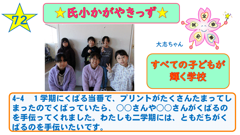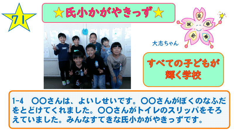 ※ ホームページでは、児童の氏名の部分を○○さんに変えています。