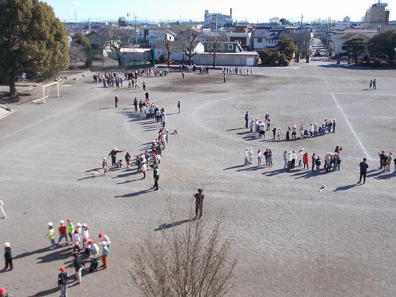 昼休みから練習しているクラスもあり、子どもたちはやる気いっぱいで、跳べた回数を数える元気な声が校庭に響いていました。
