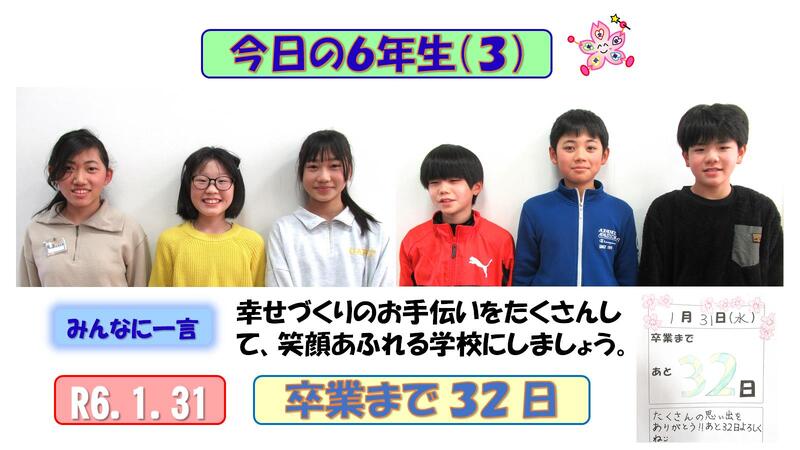 今日の6年生です。中学校での目標や頑張りたいことをしっかり考えていて、感心しました。