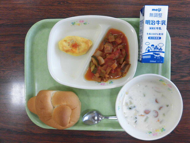 今日は、オムレツの中にトマトが使われています。今日は、給食委員会による残り物調べ 3日目 です。