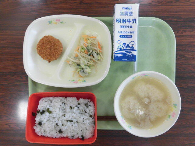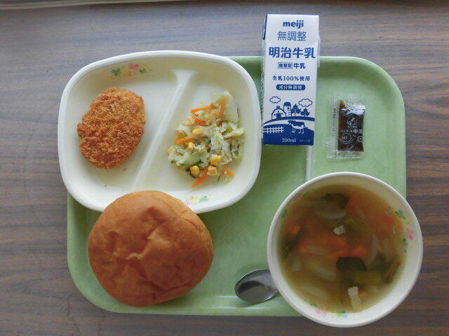 今日は、七夕にちなんだ献立です。天の川をイメージしたスープや、星型のコロッケ、七夕ゼリーをつけました。