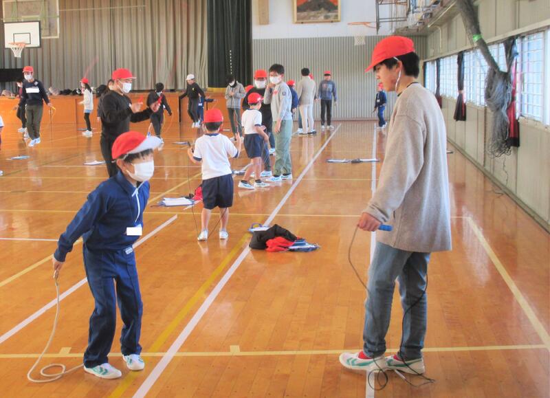 6年生の総合的な学習の時間の一環で「幸せづくりプロジェクト」として、1年生に短縄跳びの跳び方を教えました。6年生は、自分の知っている跳び方に加えて、どうすれば跳びやすくなるかを事前に調べました。今日は、6年1組と1年1組が交流しました。6年1組の皆さん、1年生はとても喜んで練習に取り組んでいましたよ。ありがとう。