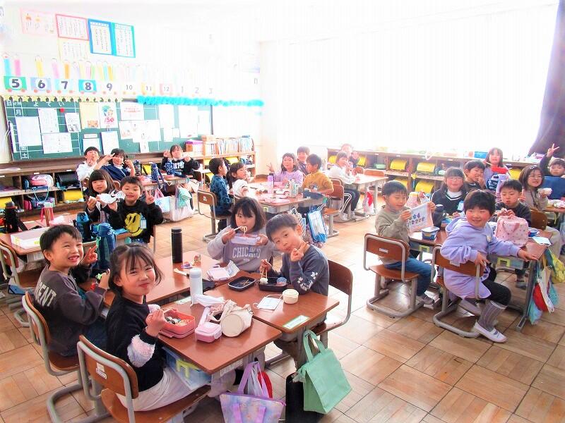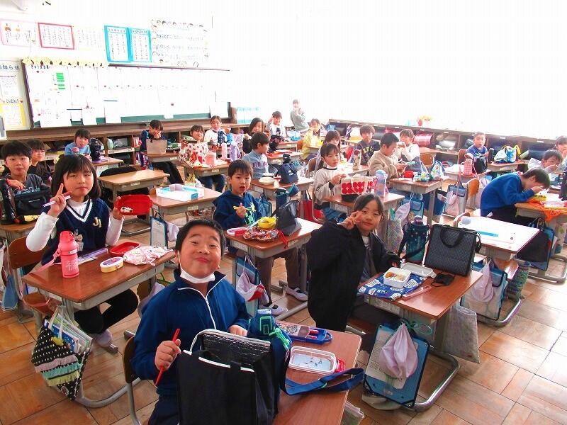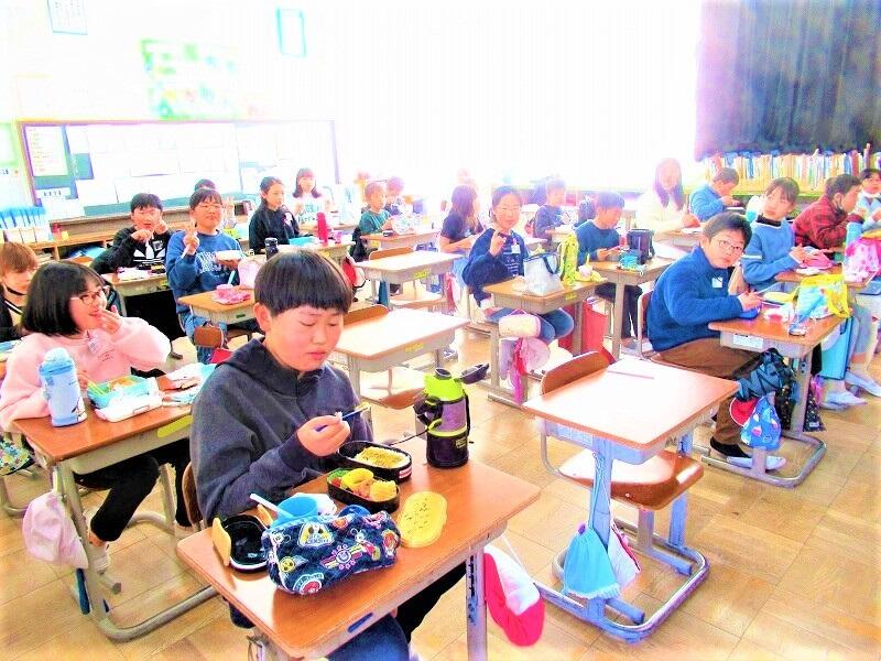 お昼には、どのクラスでも、うれしそうにお弁当を食べる姿が見られました。