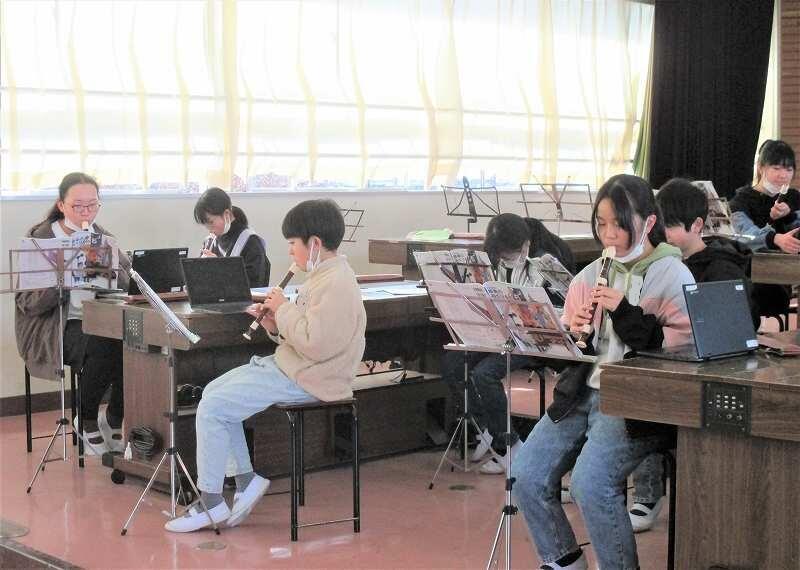 リコーダーで、「カノン」の練習をしています。指の位置や押さえ方に気を付けながら、演奏することができました。