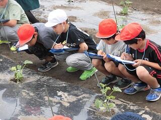 隣の畝では、先日野菜を植えた3年生がしっかりと観察記録を取っていました。