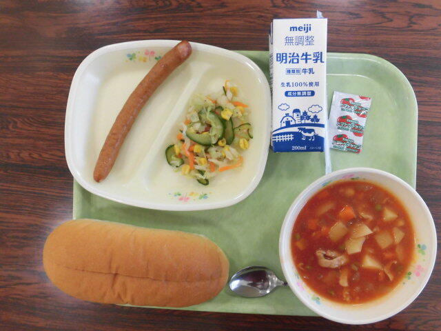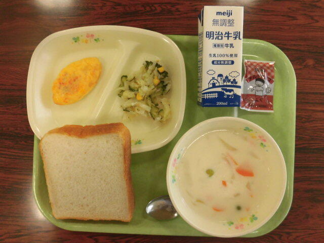 パンは、ごはんや麺と同じように熱や力のもとになる大切な食べ物です。今日は、パンにフルーツクリームをはさんで食べましょう。