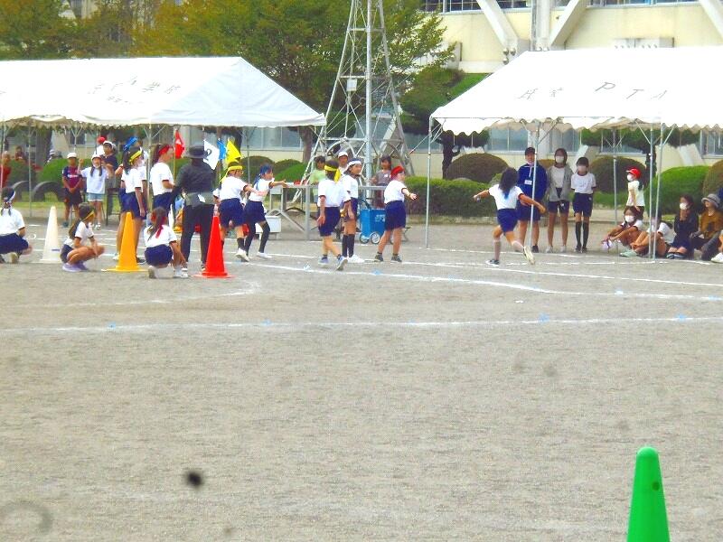紅白対抗リレーは、各学年で選抜された選手が、1年から6年までバトンをつなぐ、運動会の最後を飾る種目です。