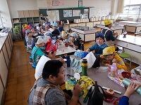 6・7・8・9組の児童は、家庭科室でおにぎりを作って、お弁当と一緒に食べていました。