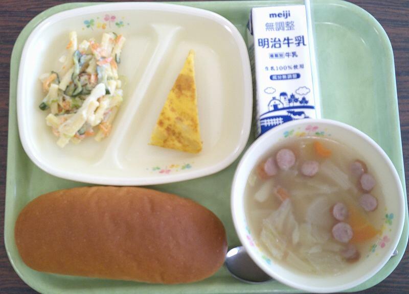 ・ 牛乳 ・ キャベツサラダ ・ ABCスープ