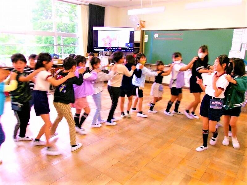 班ごとに、それぞれに選んだ曲に合わせて体を動かしました。