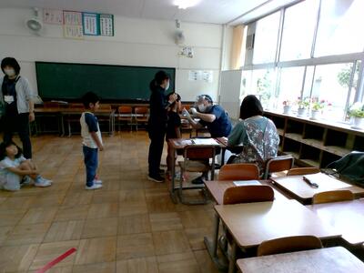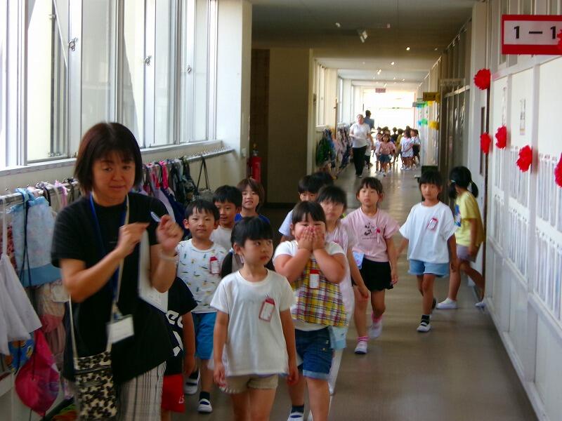 まだ、校内の配置がよくわからない1年生たちです。6年生の班長さんたちが、1年教室まで送り迎えをしてくれました。