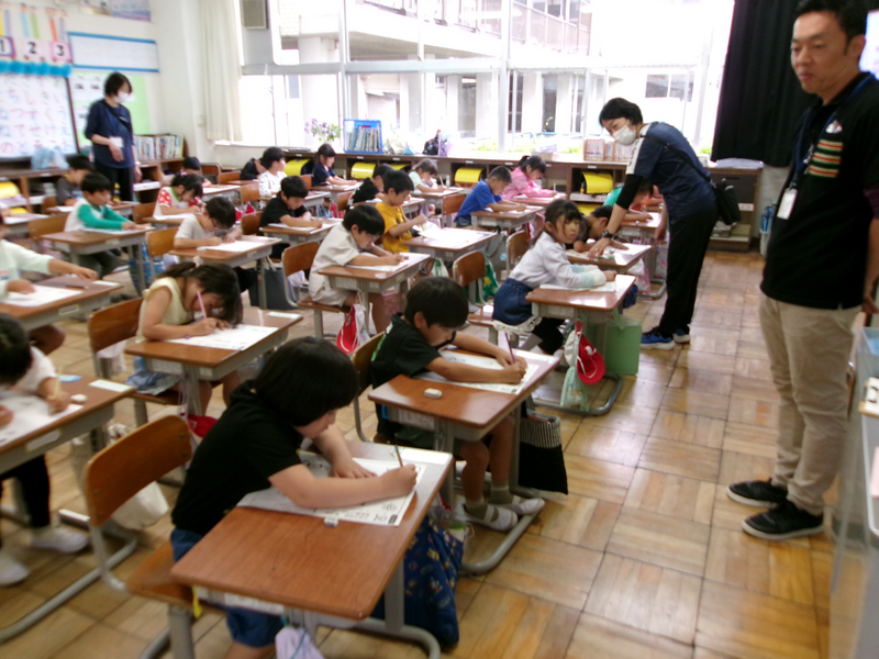 子どもたちは、英語の説明をよく聞いて、楽しく学習に取り組んでいました。