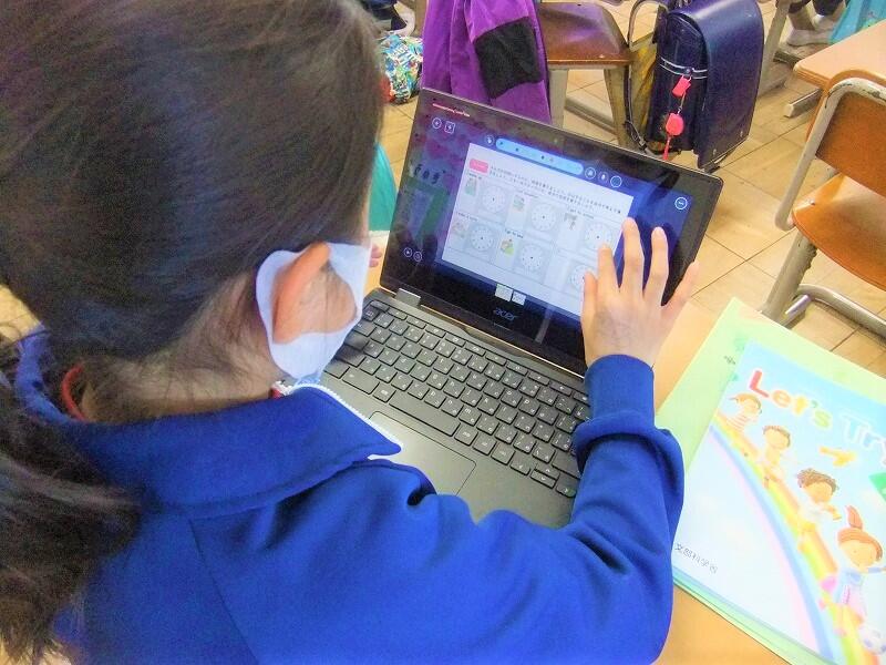 子どもたちは、デジタル教材を使って、興味をもって学習に取り組んでいました。