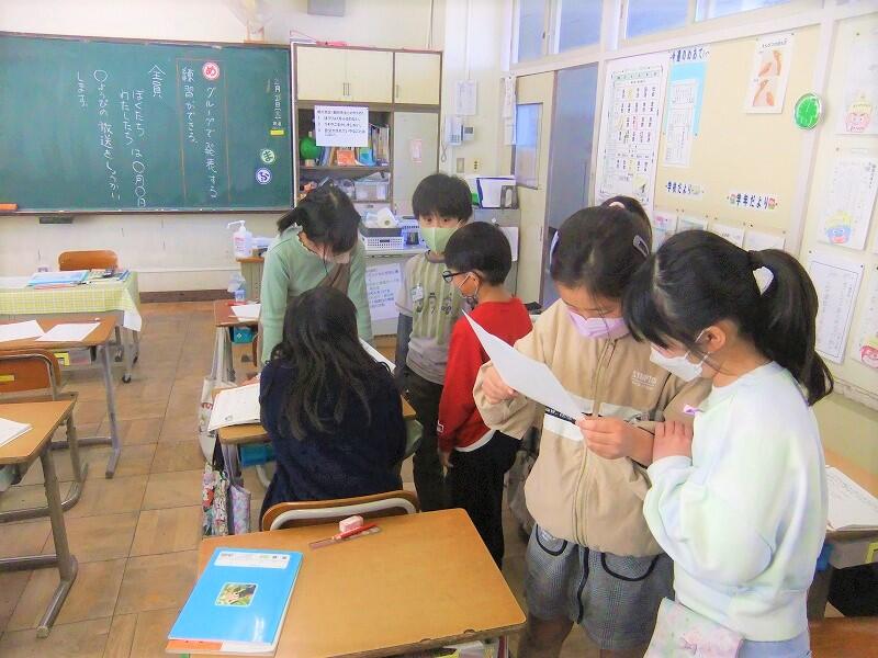 今まで活動してきた「なかよし班」ごとに分かれて、6年生や氏家小学校に関するクイズに挑戦しました。