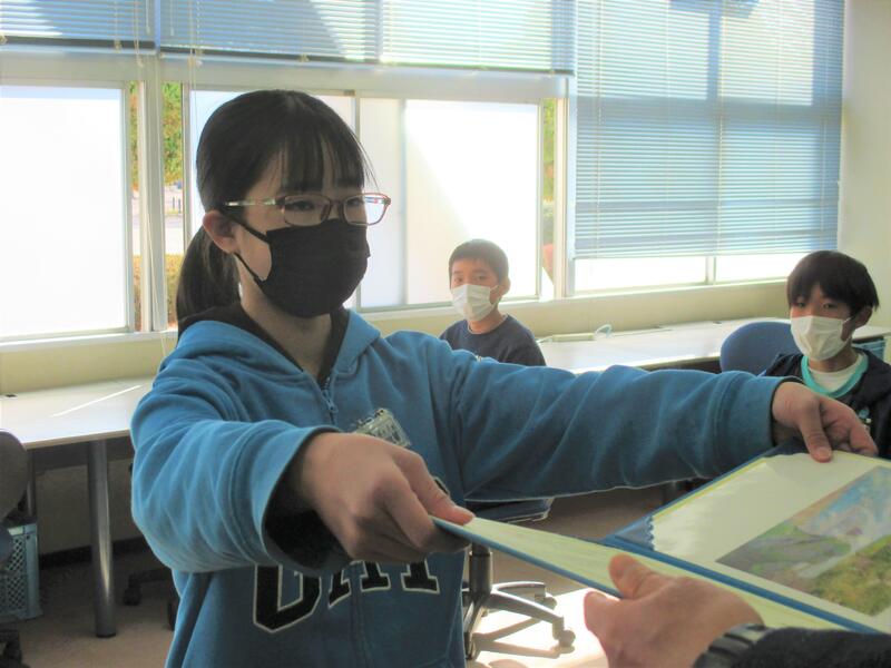 クイズの後、これまで1~5年生が準備してきたプレゼントを贈呈し、6年生一人一人からメッセージをもらいました。