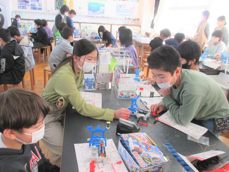 理科の授業です。今日は、子ども向けプログラミング教材(WeDo)の使い方に触れ、簡単なプログラムを作りました。
