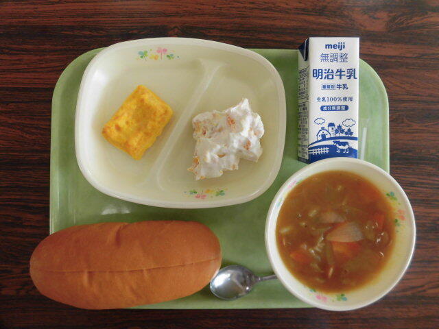 今日は、マカロニのクリーム煮の中にも牛乳が入っています。