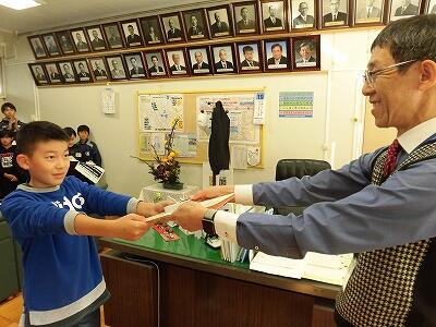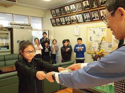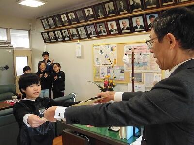 塩那小学生柔道錬成大会の表彰を校長室で行いました。