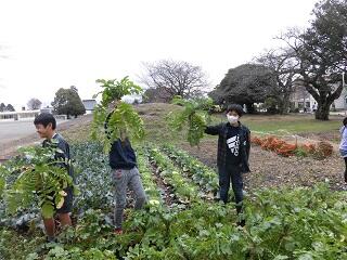 11月25日(月)の委員会活動の時間に、教材園の大根を収穫しました。