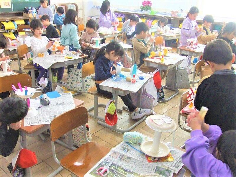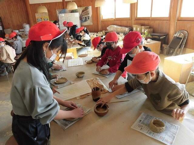 その後、陶芸体験としてコップやお皿などの作品を作りました。作り方をよく聞いて、工夫しながら活動に取り組みました。子どもたち一人一人が、自分だけのすてきな作品を作ることができました。