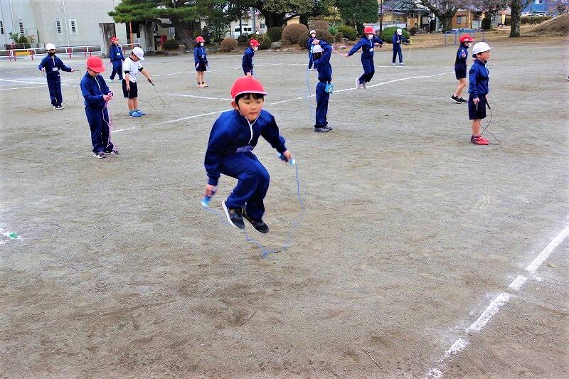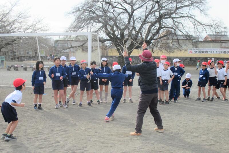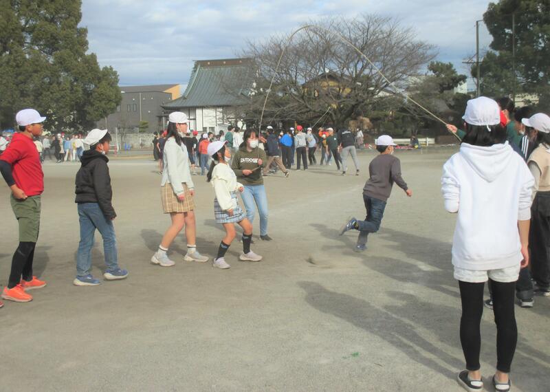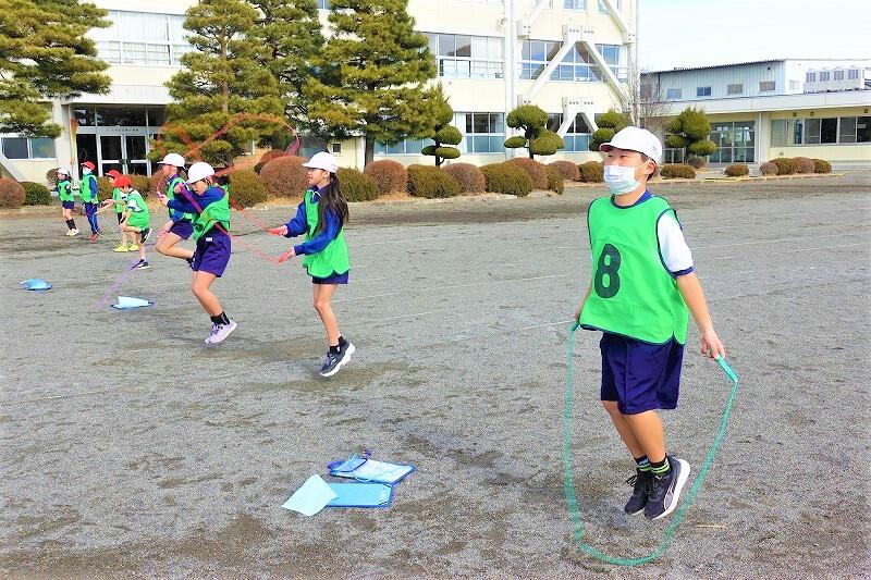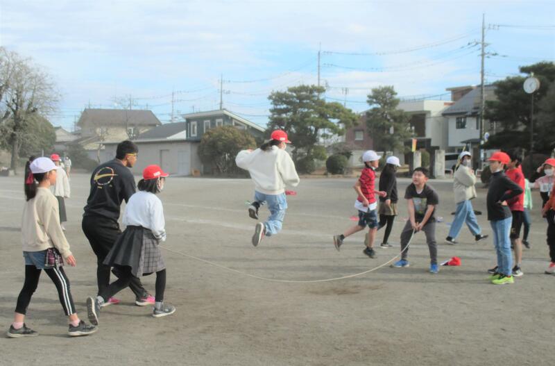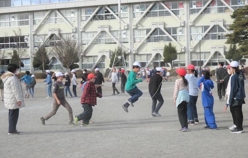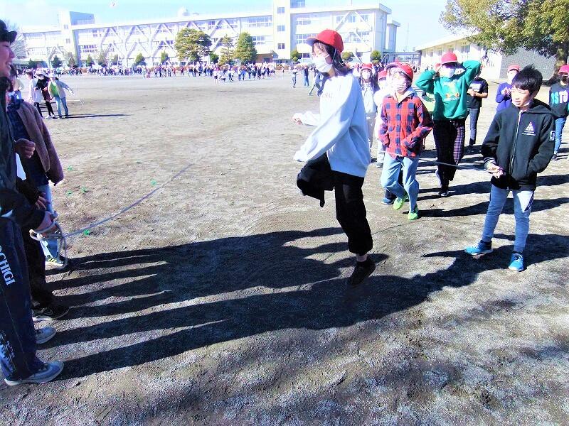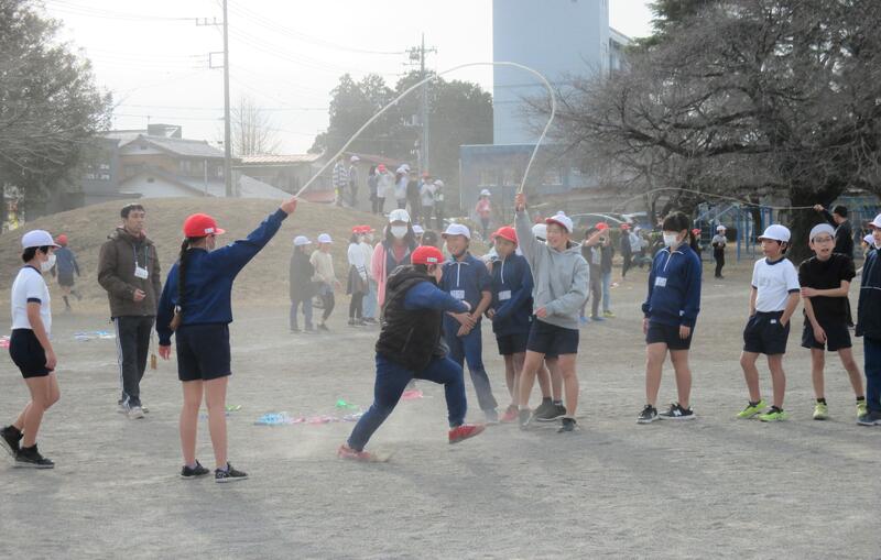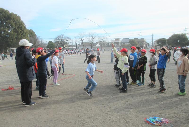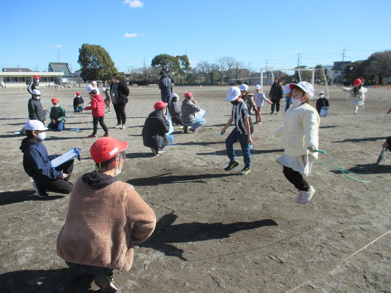 昼休みから練習しているクラスもあり、子どもたちはやる気いっぱいで、跳べた回数を数える元気な声が校庭に響いていました。