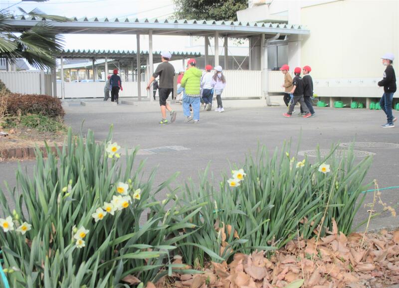 毎日寒い日が続きますが、ふと目をやるとスイセンの花が咲き、1年生のチューリップの芽が出ていました。玄関ではロウバイの黄色の花と素敵な香りが来校者を迎えます。植物のエネルギー感じます。