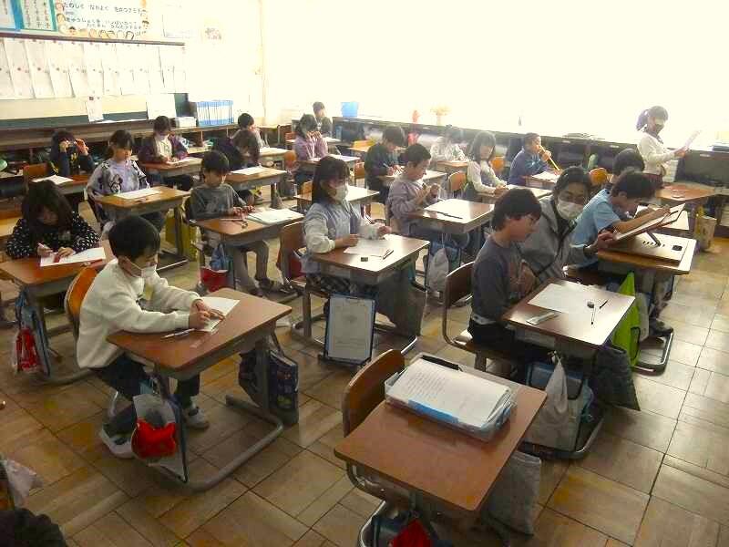 さすが、もうすぐ進級して、小学校生活の半分が修了する3年生です。自分たちで静かに学習を進めることができていました。