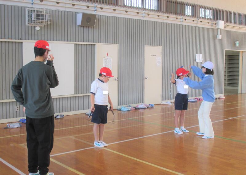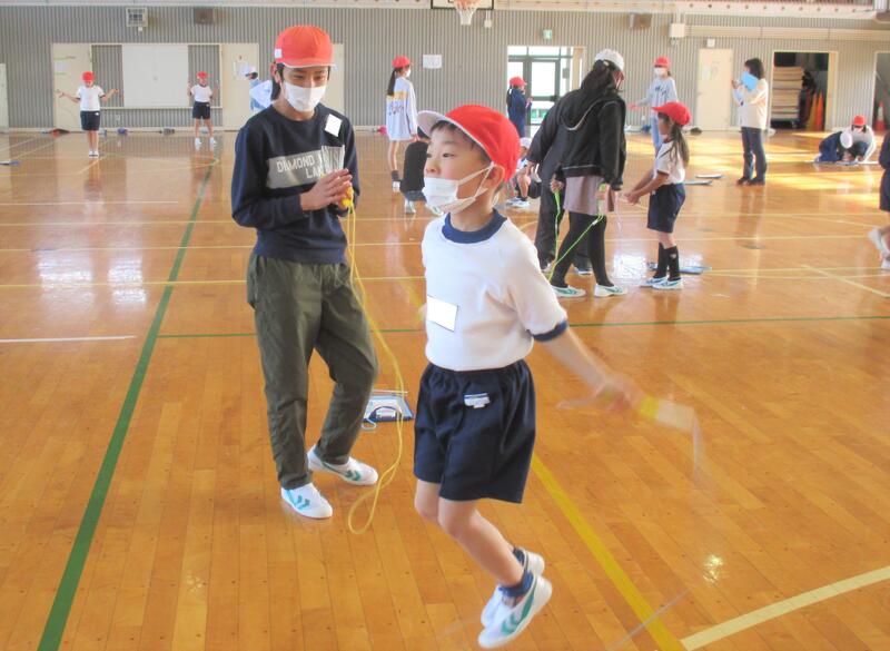 体育の「多様な動きをつくる運動」の一環で、縄跳びをしています。子どもたちは新しい技に取り組んだり、今までやった技を組み合わせたりして、様々なことに挑戦していました。