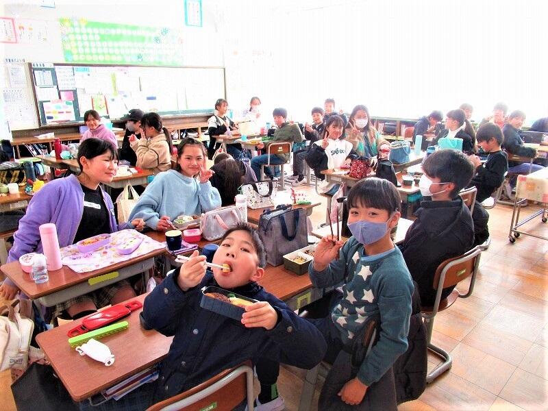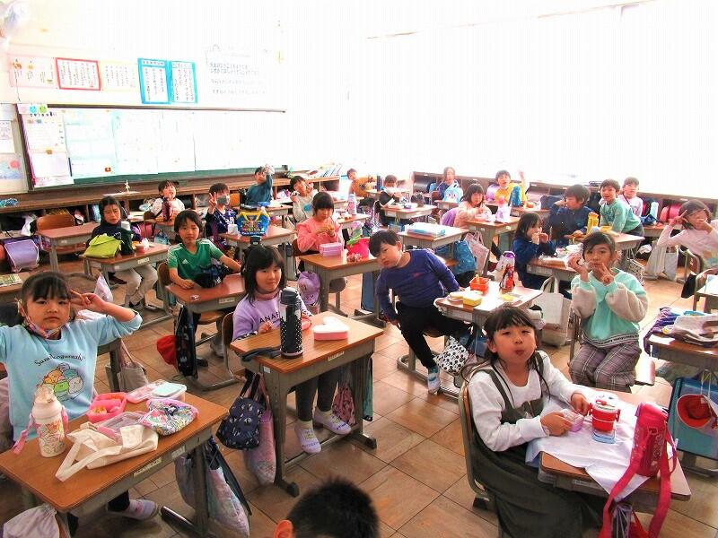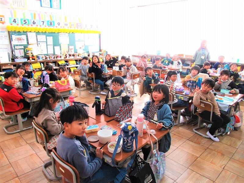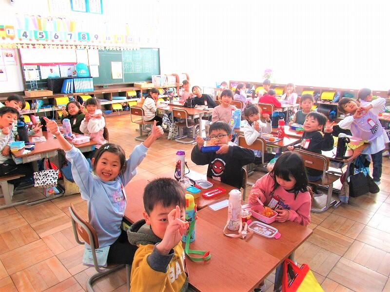 お昼には、どのクラスでも、うれしそうにお弁当を食べる姿が見られました。